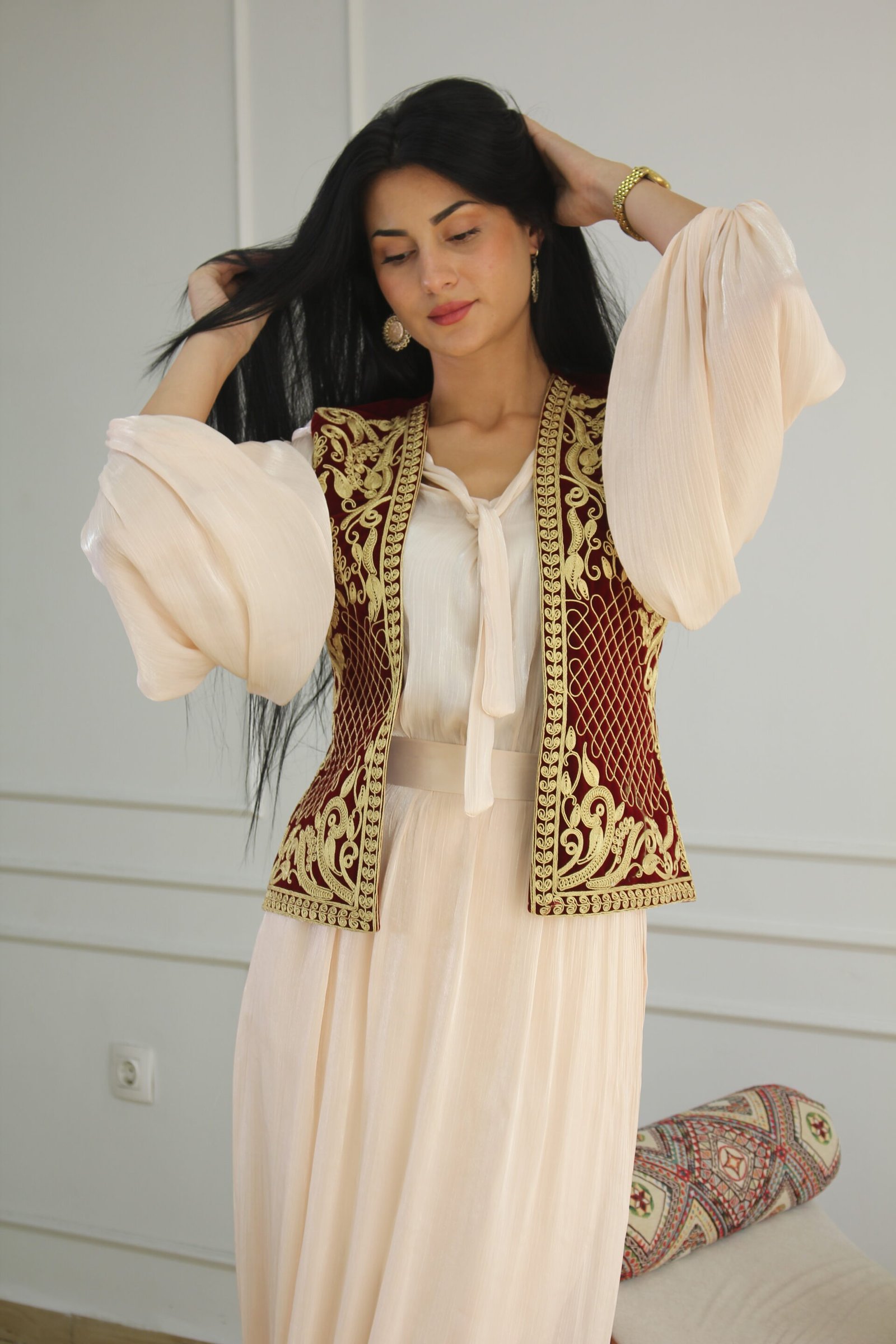 tenue ghlila 3 pièces  (ghlila / sarwal / chemisier en organza )