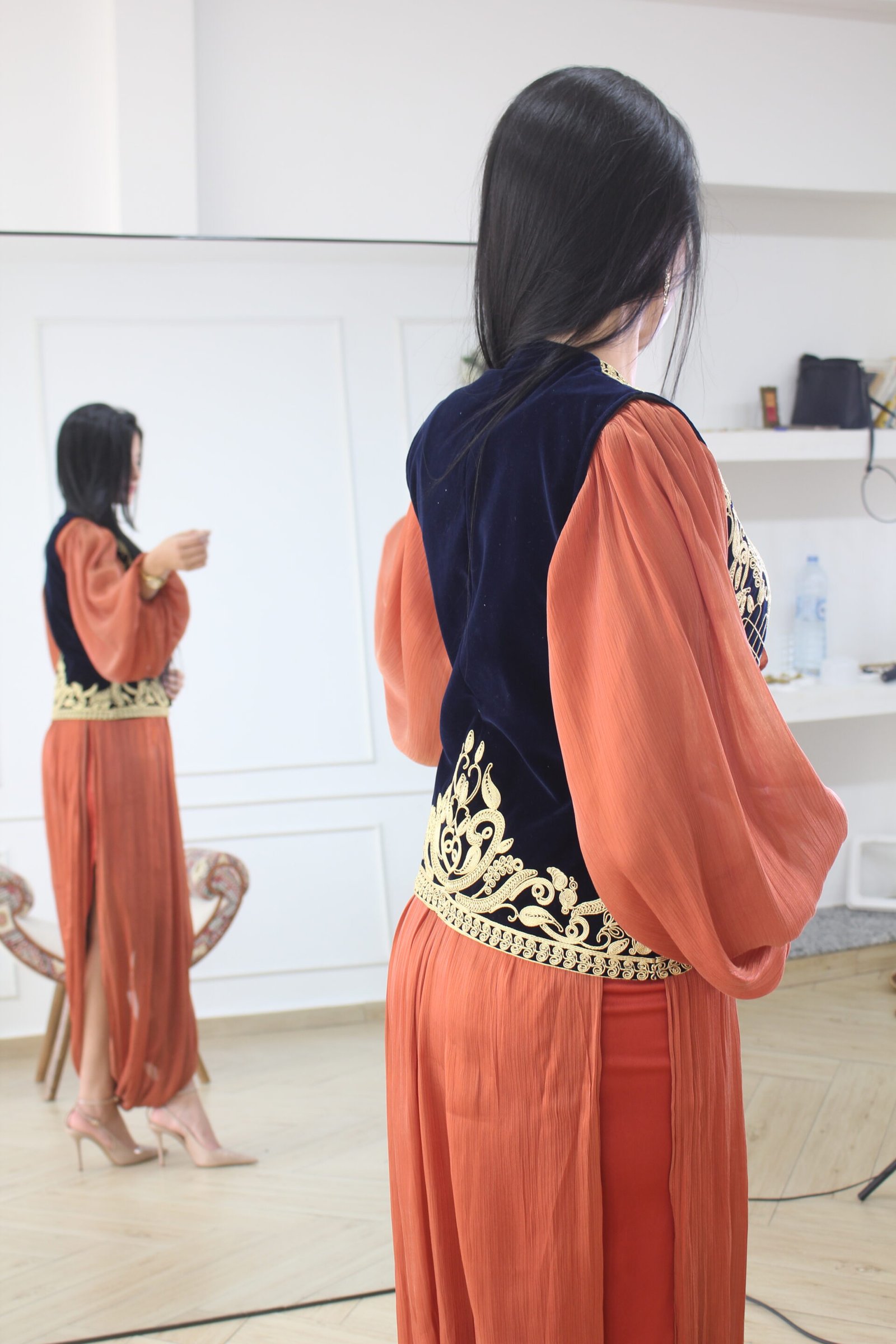 tenue ghlila 3 pièces  (ghlila / sarwal / chemisier en organza )